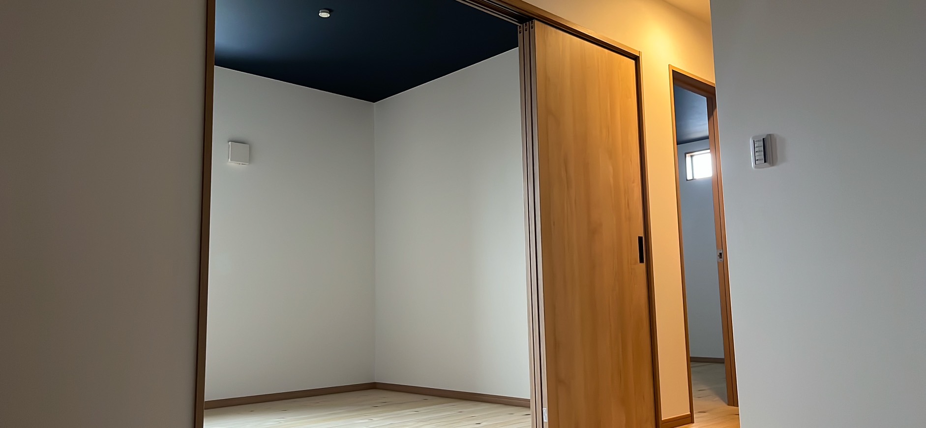 居室の天井はぐっすり眠れるようにクロスは紺色に
